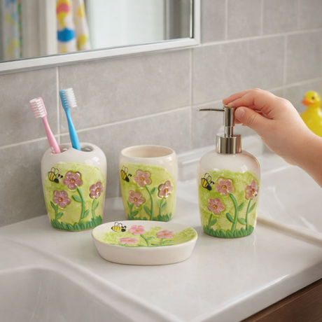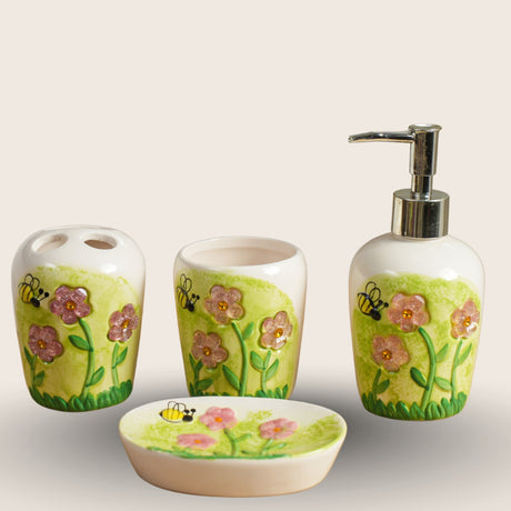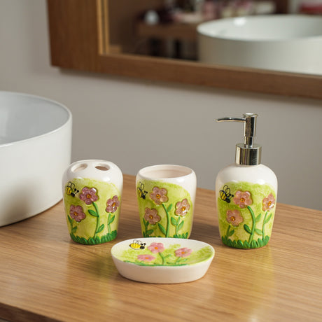 Green Flower & Bee Ceramic Bathroom Set | Pinch of Pretty