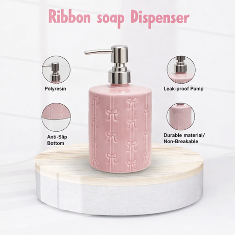 Ribbon Soap Dispenser | Elegant Pink Bathroom Accessory | Pinch of Pretty
