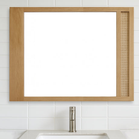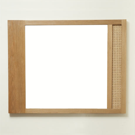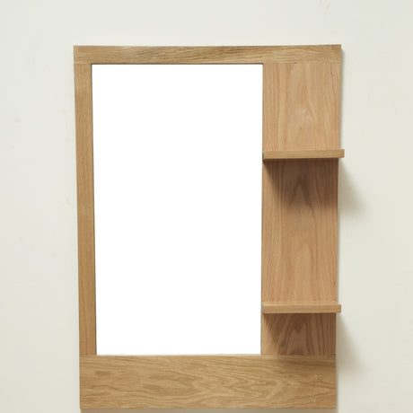 Oak Wall-Mounted Mirror with Dual Storage Shelves