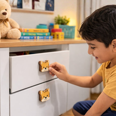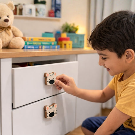 Each knob is crafted from high-quality wood and finished with playful, kids-friendly designs. From stars and rockets to unicorns, ships, cricket balls and more, our wooden knobs collection adds personality, colour and charm to your child’s room – without changing the furniture itself.