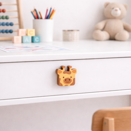Giraffe Wooden Drawer Knob for Kids Wardrobe Handcrafted Kids Room Furniture Handle
