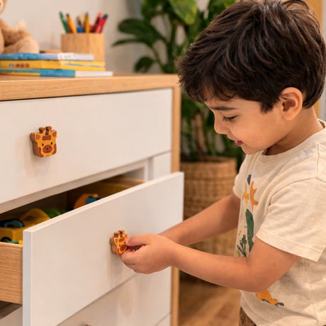 Small details can completely transform a kids’ room, and knobs are one of the easiest ways to do it. Our wooden knobs are touched every day – on wardrobes, study tables, toy cabinets and dresser drawers. With Pinch of Pretty’s kids’ wooden knobs in pine and acacia wood, even the simplest furniture turns into a fun, designer-looking piece.