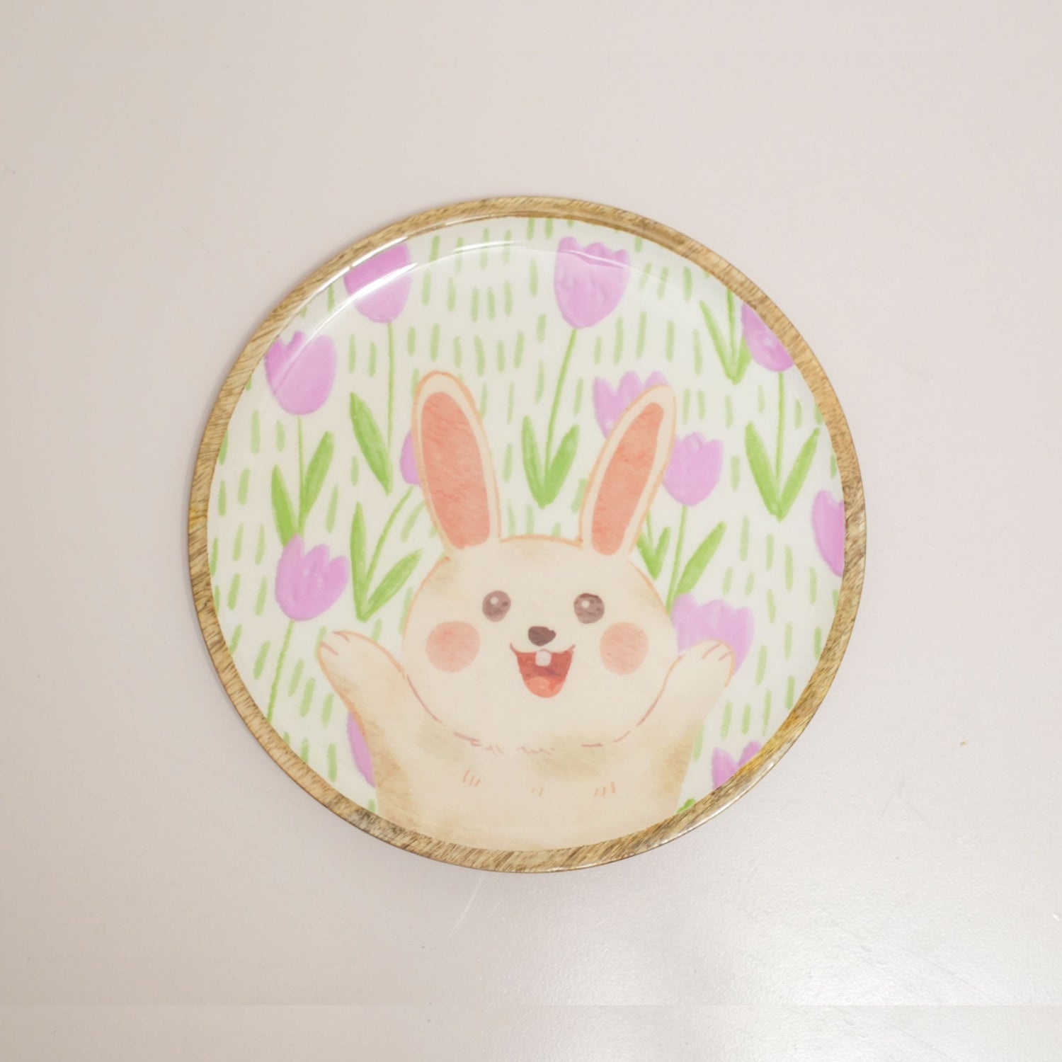 Happy Bunny Floral Wood Plate– Handcrafted Pastel Easter Kids Dinnerware | Pinch of Pretty