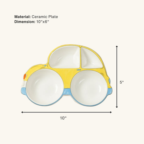 Yellow Car Ceramic Plate – Handcrafted Kids Dinnerware | Pinch of Pretty
