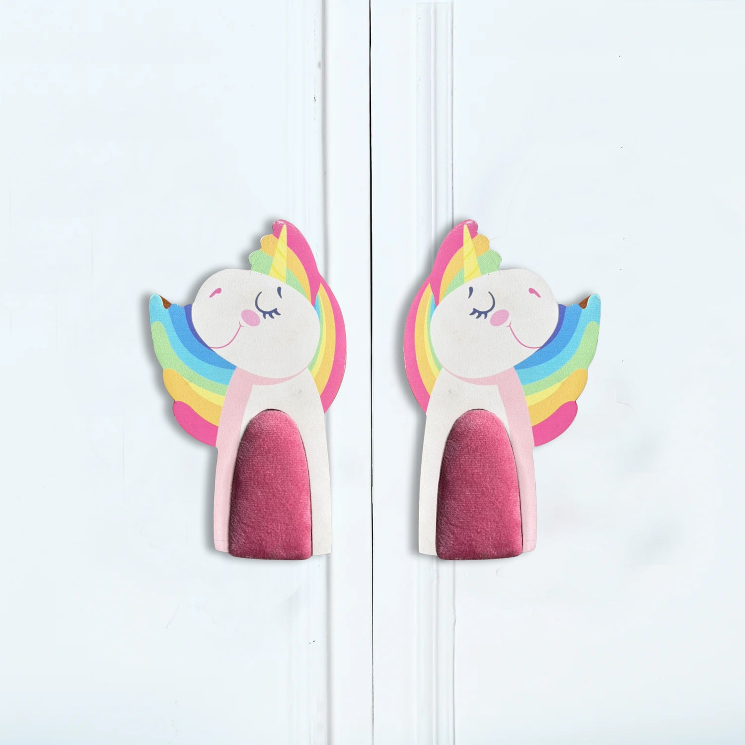 - Design: Adorable and magical unicorn shape with rainbow-colored wings and a horn. The design is mirrored, allowing for a symmetrical arrangement on furniture.
