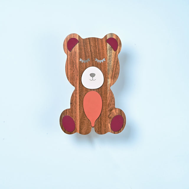 Bring warmth and coziness into your child’s room with this adorable Teddy Bear-Themed Wall Light. Crafted from premium wood, this cute bear-shaped light adds a playful and comforting element to any nursery, playroom, or bedroom. With its gentle glow, it’s perfect for bedtime, creating a calm and inviting atmosphere. The combination of natural wood and vibrant painted accents makes it both decorative and functional, ideal for kids who love cuddly teddy bears.